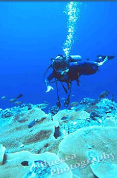 Coming up from deep ship wreck dive